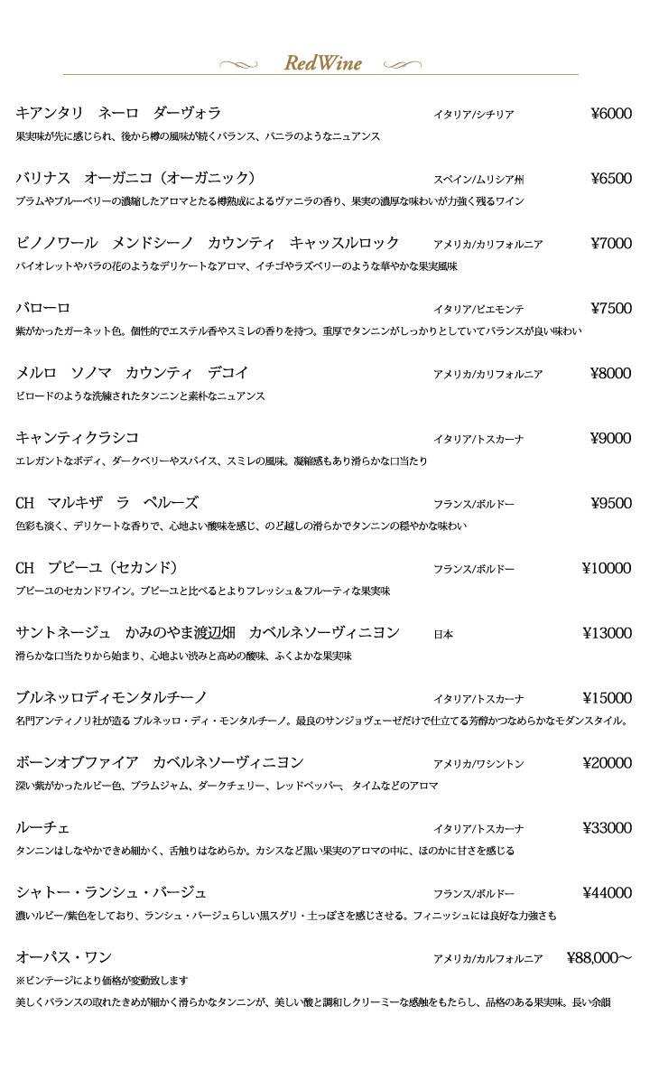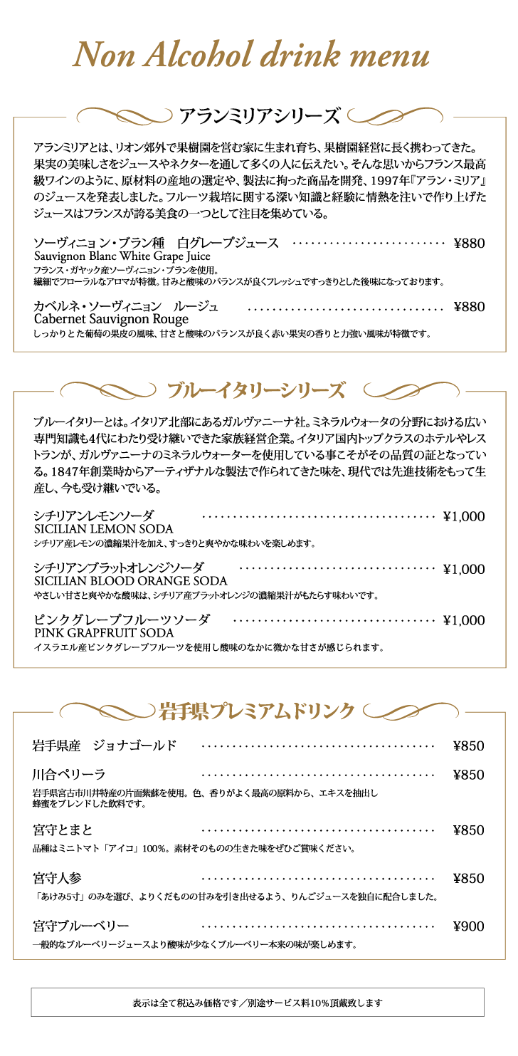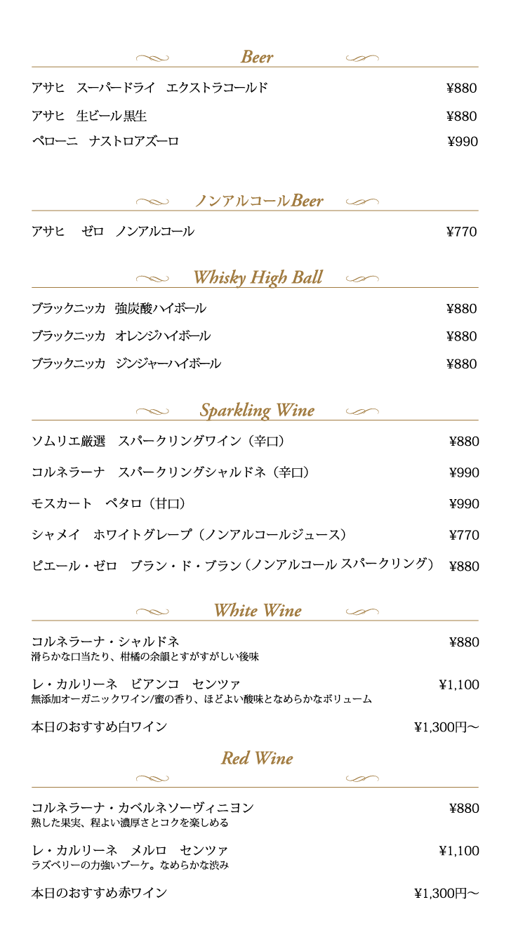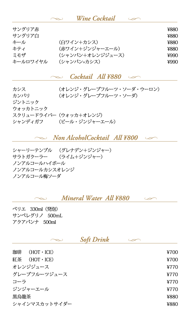 ドリンクメニュー
