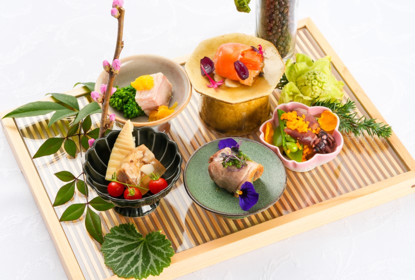 シェフの出身である岩手県の食材を使用したイタリアの伝統料理を見た目にも華やかな懐石料理の「八寸」にアレンジしました。 平日のみのお得な限定ランチコース。
